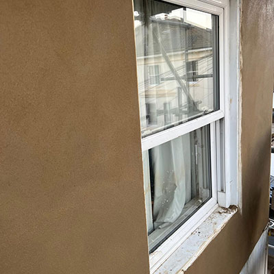 Refurbish exterior render by hacking of all damaged render apply two coats of sand and cement and paint